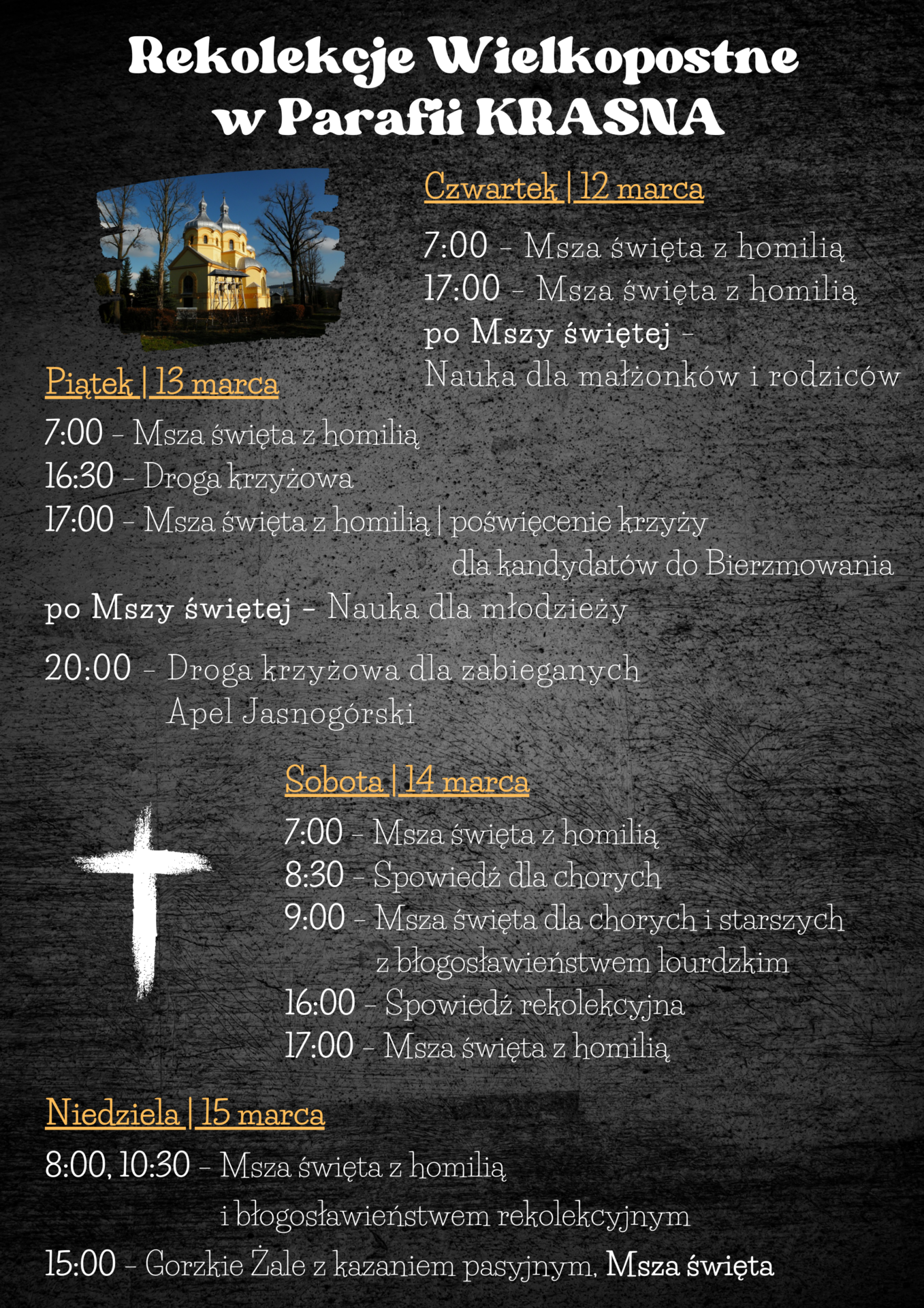 Plan rekolekcji parafialnych 12-15 marzec 2026 r.