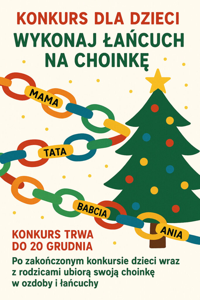 Konkurs (do 20 grudnia) – trzeba wykonać łańcuch na choinkę, gdzie poszczególne ogniwa oznaczone będą osobami, które dzieci kochają.